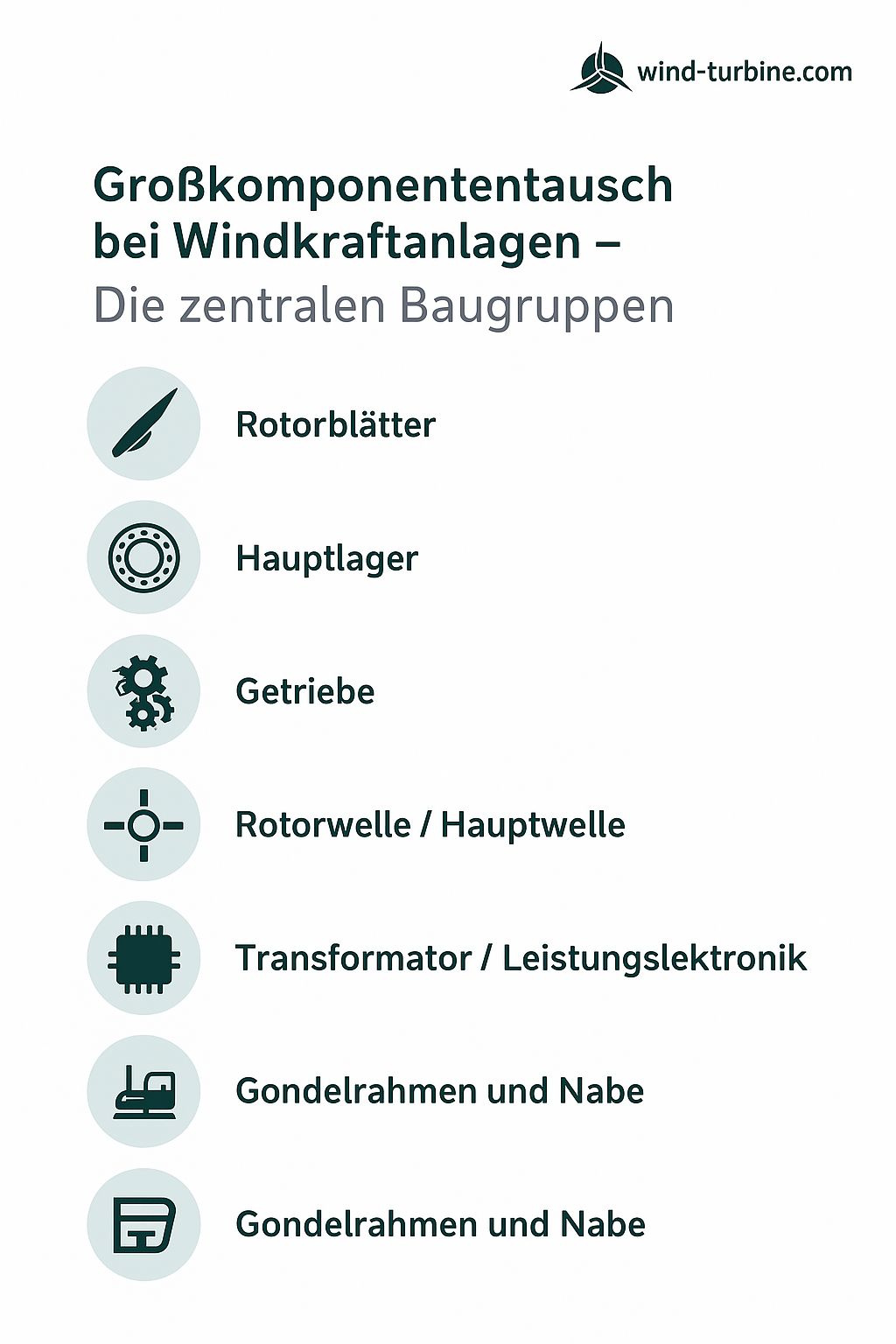Après dix à vingt ans de fonctionnement, les éoliennes atteignent souvent le point où les composants centraux atteignent leurs limites d’usure. Les gros composants tels que les boîtes de vitesses, les roulements principaux, les générateurs ou les pales de rotor sont particulièrement touchés. Leur remplacement pose des défis techniques, logistiques et économiques aux exploitants, mais offre en même temps la possibilité d’allonger considérablement la durée de vie et la rentabilité des systèmes existants.