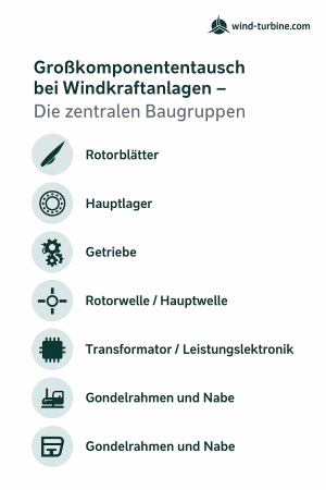 L’article suivant explique quels sont les composants les plus touchés, comment fonctionne un remplacement de composants de grande taille, quels sont les risques et les exigences de planification – et pourquoi cette mesure devient de plus en plus un facteur clé pour un fonctionnement sûr et durable des éoliennes.